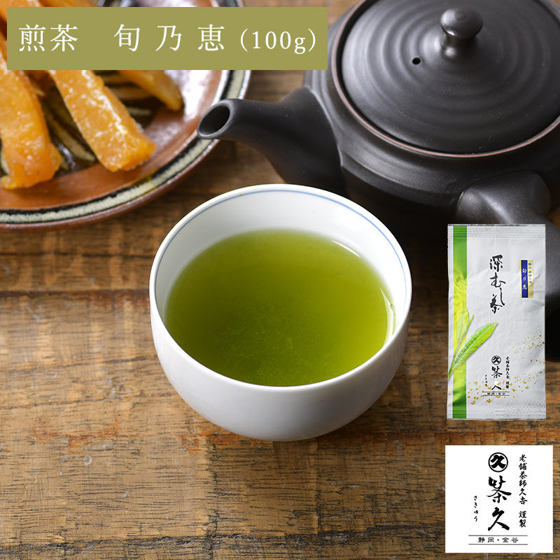 茶師久吉が心を込めて作った、匠乃香に次ぐご家庭用に人気の深むし煎茶。元気に大きく成長した茶葉を充分に芯まで蒸すため、粉っぽいところがございますが、水色は鮮やかな緑で、まろやかな味わいが特徴です。美味しさは価格以上。少し熱めの温度でどうぞ。