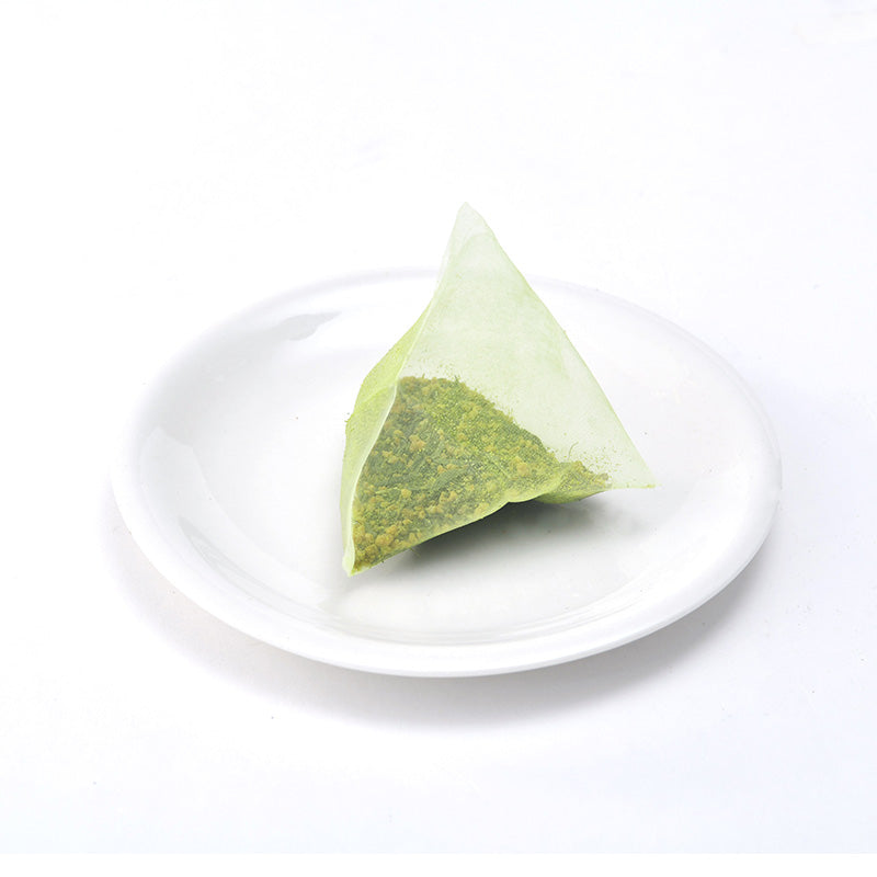 ティーバックの包材にとうもろこしの澱粉を原料とした自然素材を採用。
