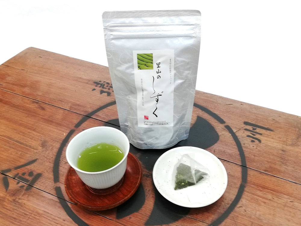 ひも付きのティーバックにしました。1パックで2煎以上 本格的な深蒸し煎茶を味わって頂けます。