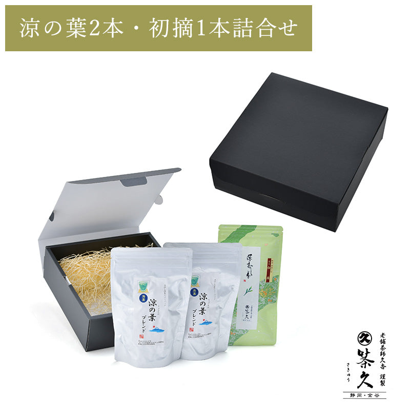 水出し冷茶ティーバック「涼の葉ブレンド(5g△×30個入り)」×2本と茶久初摘100g×1本の詰合せ